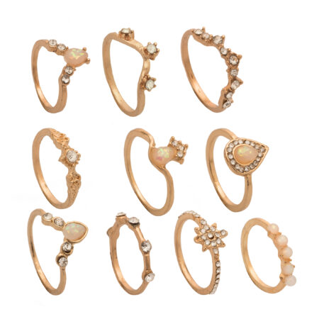 Σετ από 10 δαχτυλίδια σε χρυσό χρώμα με πετράδια σομόν σε γήινες αποχρώσεις με διαμαντάκια στις λεπτομέρειες!Μπορείτε να το φορέσετε σε αρκετά σημεία στα δάχτυλα!