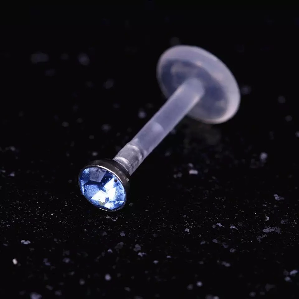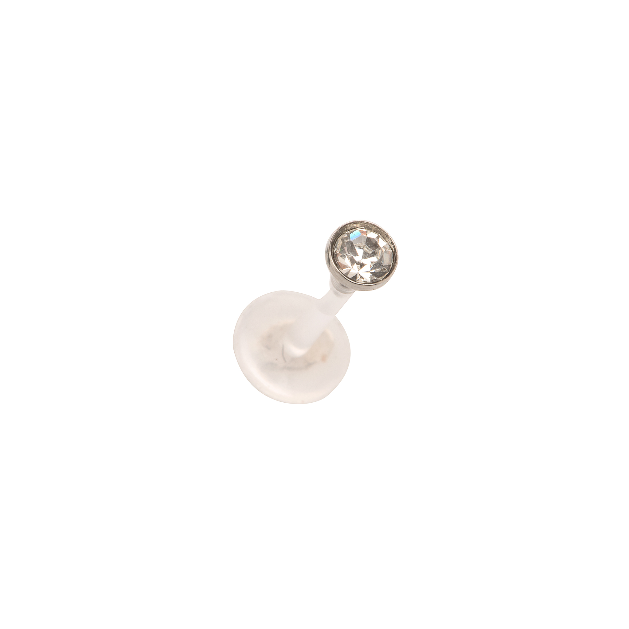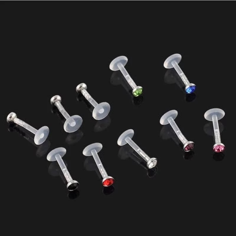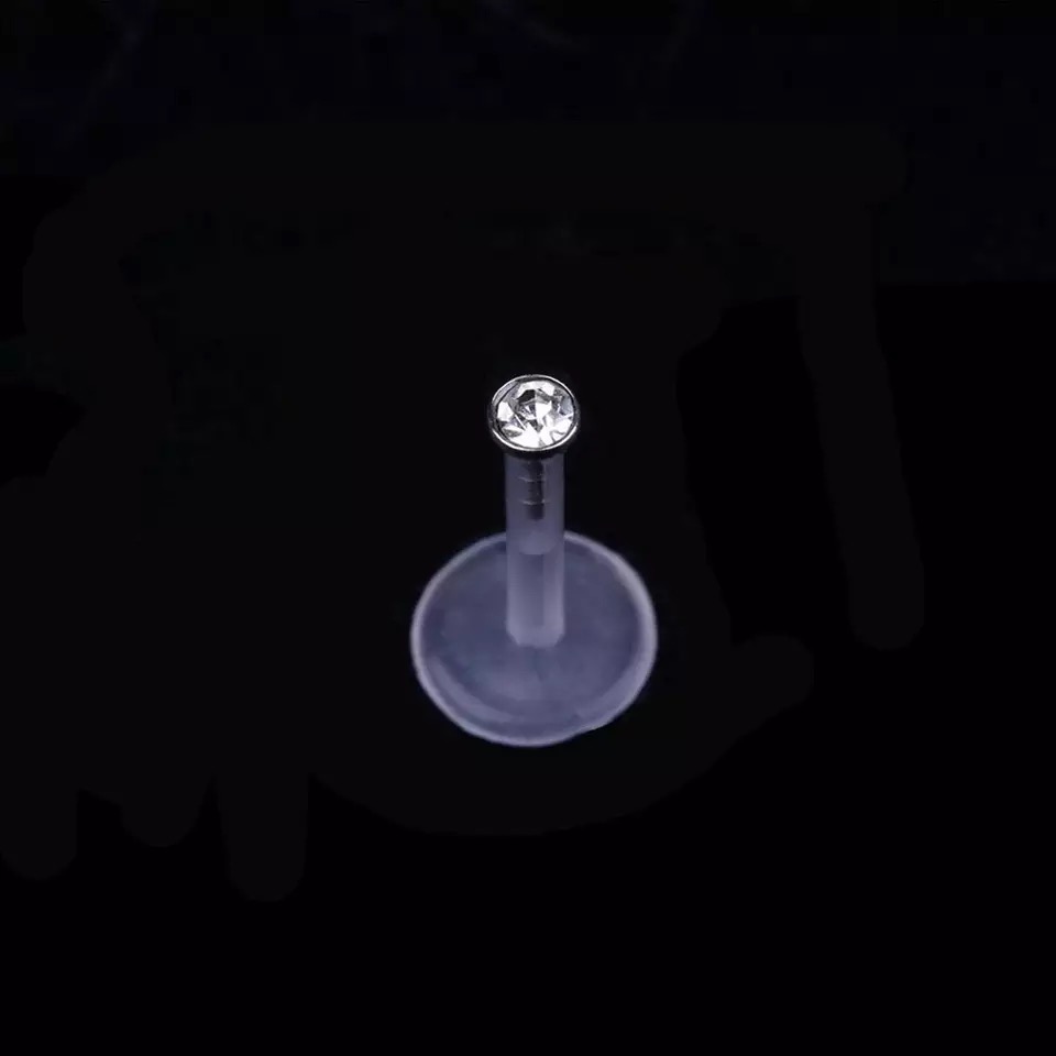 Κλασσικό labret σκουλαρίκι το οποίο μπορεί να φορεθεί σε όλα τα piercings του αυτιού αλλά και στα χείλη. Το σκουλαρίκι είναι καρφωτό από ακρυλικό υλικό όπου την άκρη του καταλήγει ένα μικρό διαμάντι. Αυτό σημαίνει ότι η τάπα του κοσμήματος δεν ερεθίζει την πίσω πλευρά της τρύπας. Είναι κατάλληλο για εύκολες αλλαγές του κοσμήματος αλλά και ενδείκνυται για δυναμικά σπορ, αφού το συγκεκριμένο κόσμημα δεν τραυματίζει το σημείο που το φοράμε καθότι είναι ακρυλικό.Διατίθεται σε διάφορα χρώματα και μεγέθη διαμαντιών αλλά και μήκη.
