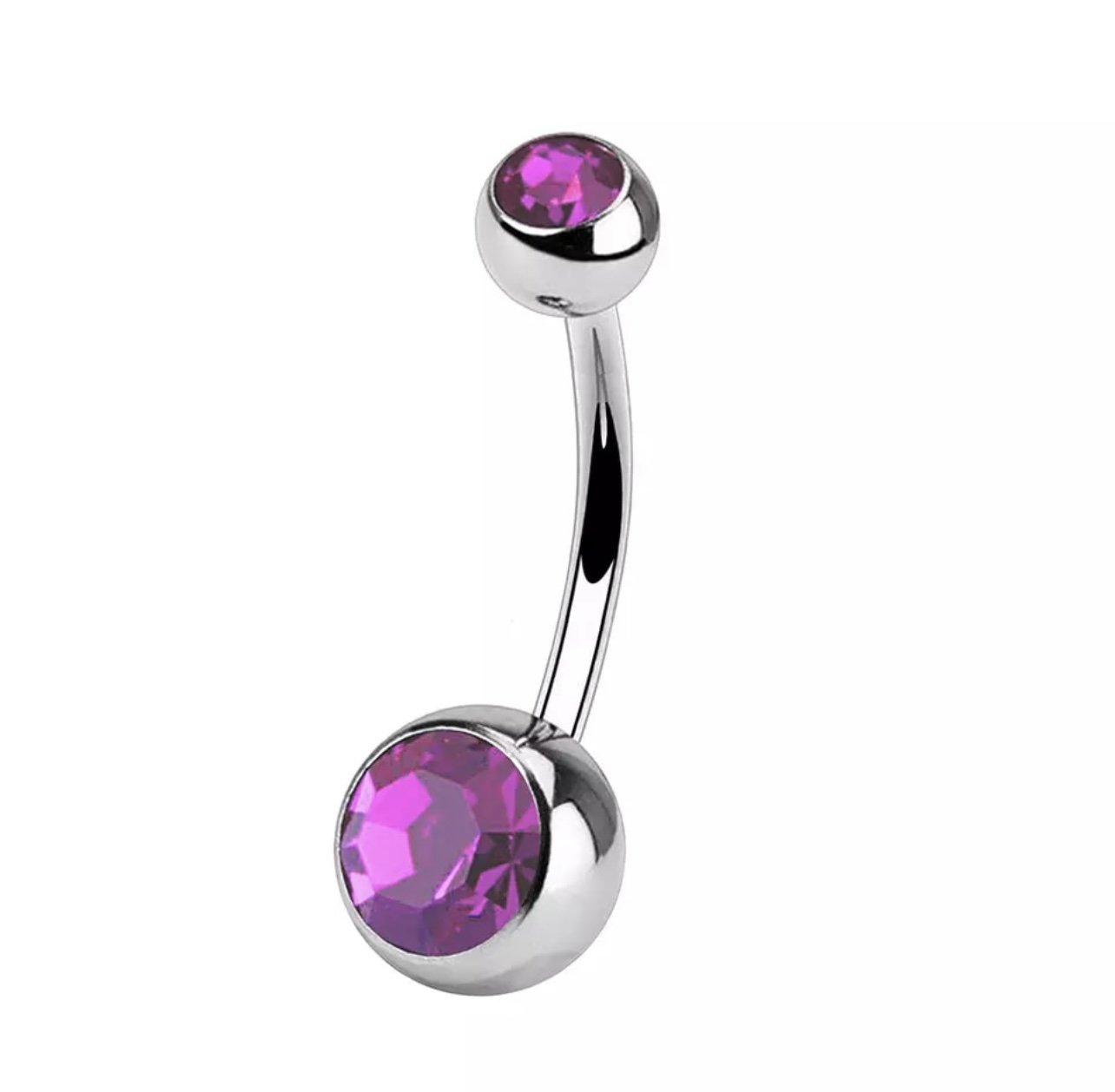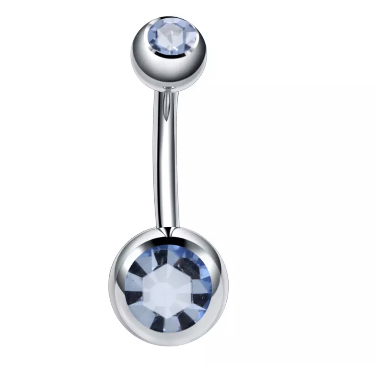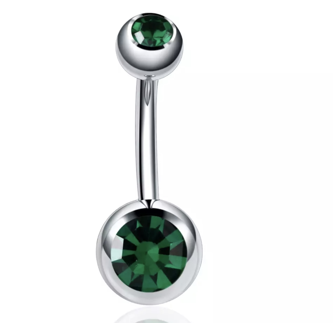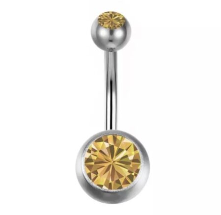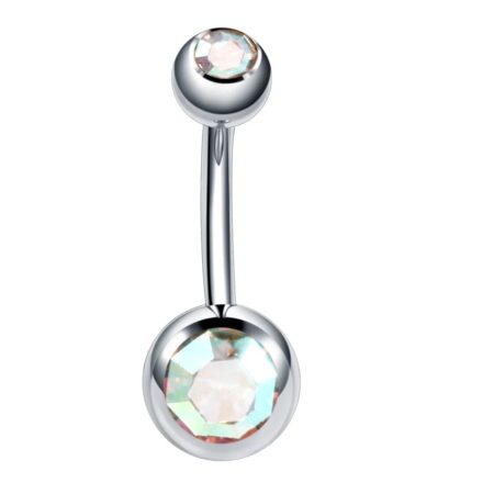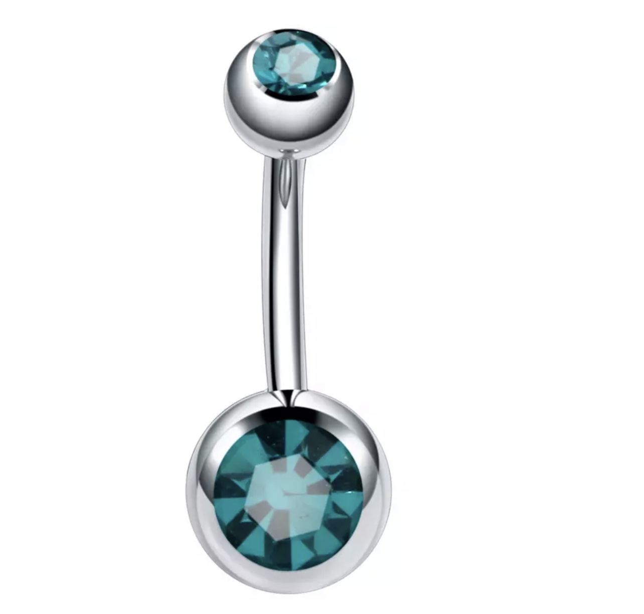 Γυναικειο κοσμημα αφαλου , διαχρονικό που δεν πρέπει να λείπει απ’ο τη συλλογή σας. Είναι το κλασσικό στέλεχος σε ασημένιο χρώμα και διαθέτει πάνω του δύο μπίλιες με καρφωμένα διαμάντια, μικρό και μεγαλύτερο μέγεθος αντίστοιχα.Το συγκεκριμένο κοσμημα διατίθεται σε διάφορα χρώματα για να διαλέξετε αυτό που σας ταιριάζει και να ξεχωρίσετε! Navel piercing που πρέπει να διαθέτει κάθε συλλογή με γυναικεία κοσμήματα.