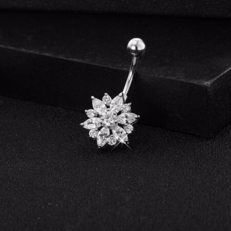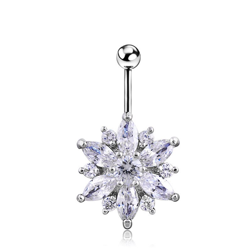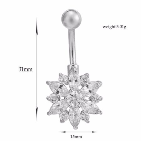 Πρόκειται για ένα υπέροχο κοσμημα για τον αφαλό. Διαθέτει ένα στέλεχος πάνω στο οποίο βλέπουμε να καταλήγει ένας υπέροχος μεταλλικός ηλίανθος ντυμένος με μεγάλα διαμάντια. Ένα απίστευτο γυναικειο κοσμημα το οποίο θα συνοδεύσει κάθε σας εμφάνιση, είτε αυτή είναι πρόχειρη είτε φανταχτερή! Θα το βρείτε σε πολλού και διαφορετικούς συνδυασμούς χρωμάτων.