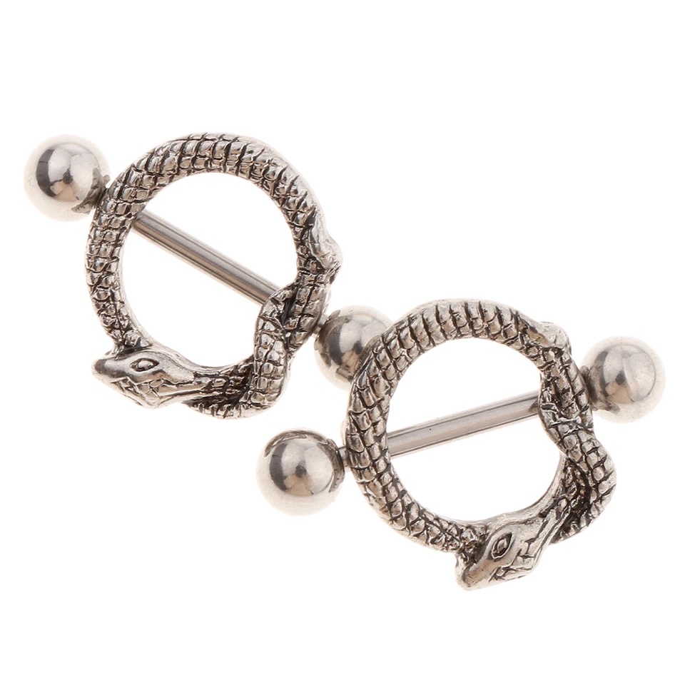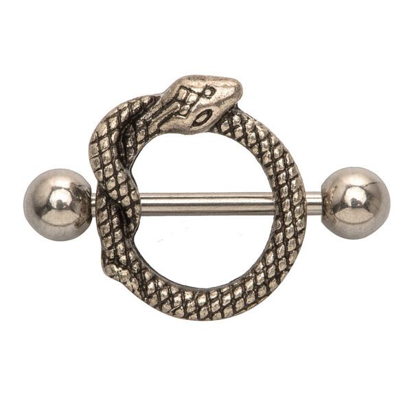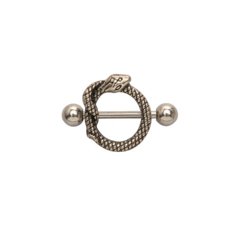 Ένα ασημένιο γυναικειο κόσμημα το οποίο μπορείτε να φορέσετε στη ρωγα. Έχει το σχήμα από μικρό ασημένιο φίδι το οποίο είναι τυλιγμένο στην μπάρα θα περάσετε από την τρύπα. Ένα πολύ αποκρυφιστικό nipple κόσμημα για τους λάτρεις και όχι μόνο του είδους!